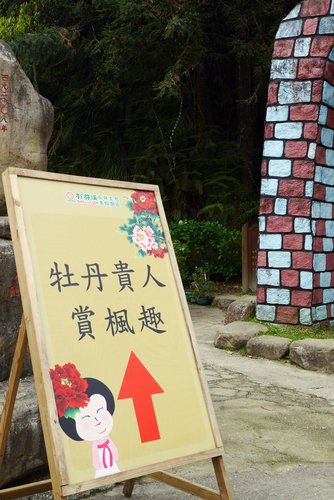 在藥花園入口處,看到"牡丹貴人賞楓趣"的指引