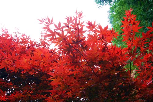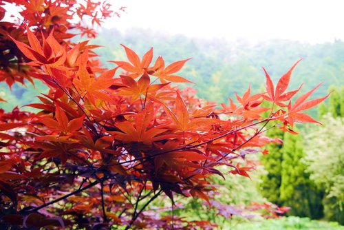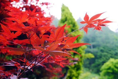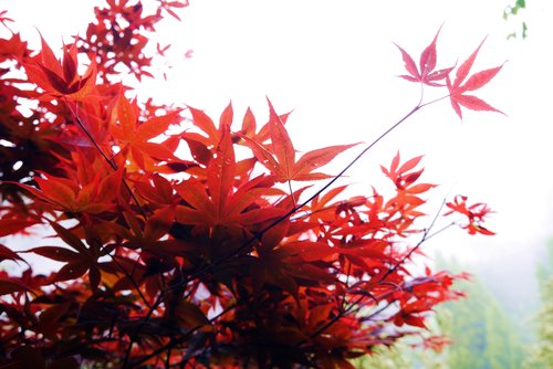青翠的綠林將盛夏楓紅襯托的更加亮眼