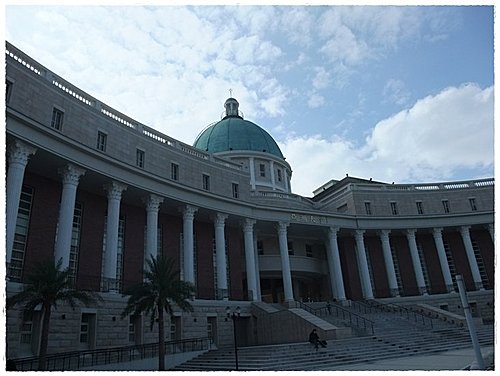 這座豪華氣派的歐式宮殿建築就是亞洲大學的行政大樓暨圖書館