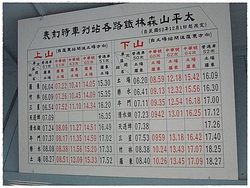 當時的火車時刻表