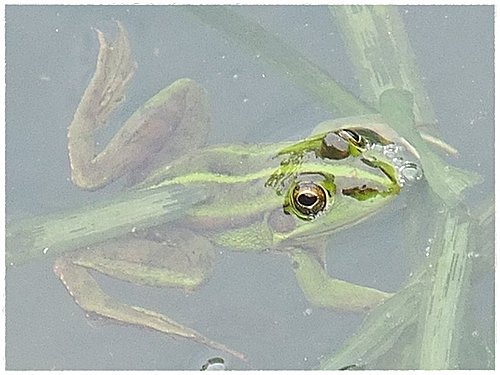 生態池的荷葉上常有保育類的金線蛙停駐,一身綠得閃耀的外衣,