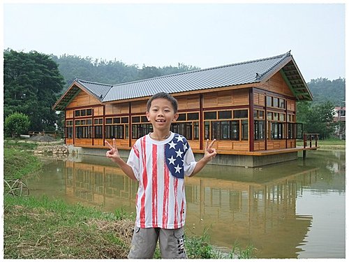 紙教堂旁還有一棟正在動工的湖畔景觀亭