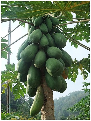 就在生態村中~小康媽第一次看到如此結果纍纍的木瓜樹...20~30顆跑不掉吧!