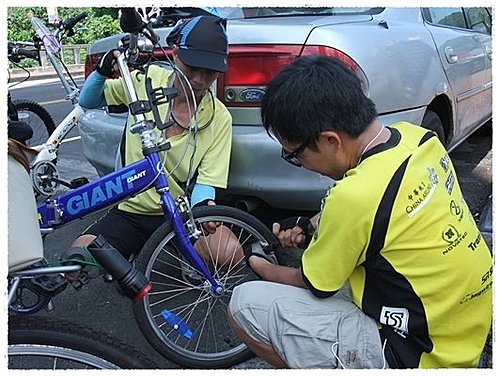 補胎工作約進行了15分鐘,我們老弱婦孺也趁機在旁休息納涼....(ㄚ!! 是補充體力啦!!